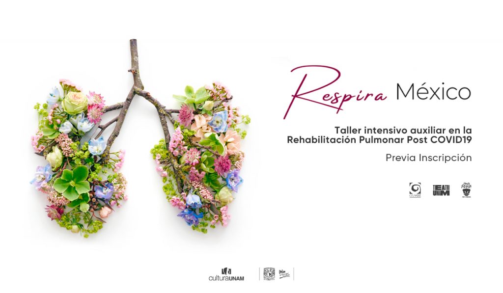 Respira México es un taller digital de rehabilitación pulmonar post Covid- 19 para la comunidad artística y cultural que hayan tenido afectaciones considerables en el aparato respiratorio o disminución en su capacidad pulmonar posteriores a padecer esta enfermedad.