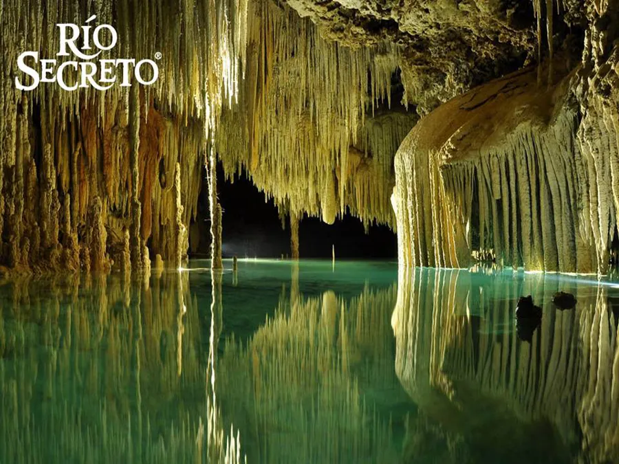 A tan sólo 10 minutos de Playa del Carmen, en Quintana Roo, se localiza Río Secreto, una maravilla natural escondida entre cavernas con formaciones de estalactitas y estalagmitas.