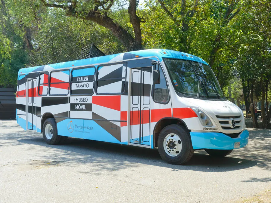 Taller Tamayo: Museo Móvil es un autobús que acudirá a escuelas y espacios públicos en la zona metropolitana para impartir diferentes talleres sobre arte contemporáneo y es una nueva etapa del proyecto Jugando con Tamayo.