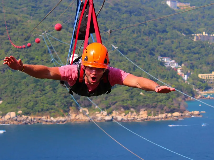 Atravesarás 1,800 metros sobre la Bahía de Puerto Marqués, con una vista espectacular y a una altura de más de 100 metros. El vuelo es de aproximadamente dos minutos y si bien al inicio es intimidante, su personal es muy profesional y amable. Ellos te mantendrán informado constantemente sobre tu seguridad. Lo que más me sorprendió es ver niños: si pesan más de 45 kilogramos y miden más de 1.30 metros tienen permitido hacer el vuelo.