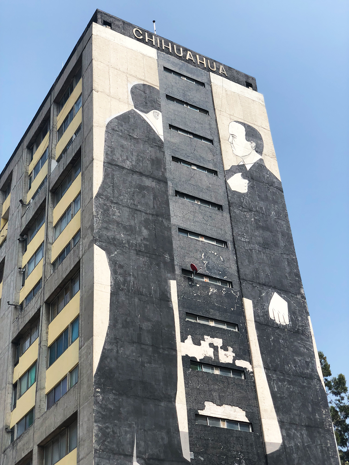 La fachada lateral de este otro gigante de Tlatelolco fue intervenida por RETNA, artista originario de Los Ángeles que tiene orígenes africanos, salvadoreños y cherokees. Fue parte de la iniciativa The Beauty Project, que llenó de grafiti y arte contemporáneo el paisaje urbano hace dos años, con la premisa de que el arte es la herramienta inequívoca para transformar la sociedad. En la obra se ven diferentes frases codificadas como México Lindo y Querido.