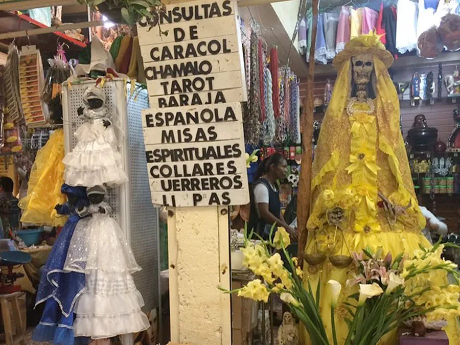 Amuletos de protección personal, jabones para atraer el dinero y amor, lociones para la buena suerte, para las envidias y malas miradas; veladoras para atraer el amor, el dinero, el trabajo, la salud. Hay personas encargadas de la magia negra que te ofrecen consulta de lectura de mano, de cocos, cartas españolas, veladoras, muñecos vudú, entre otras. La gente creyente acude a estos establecimientos en busca de ayuda y para sanar sus males.