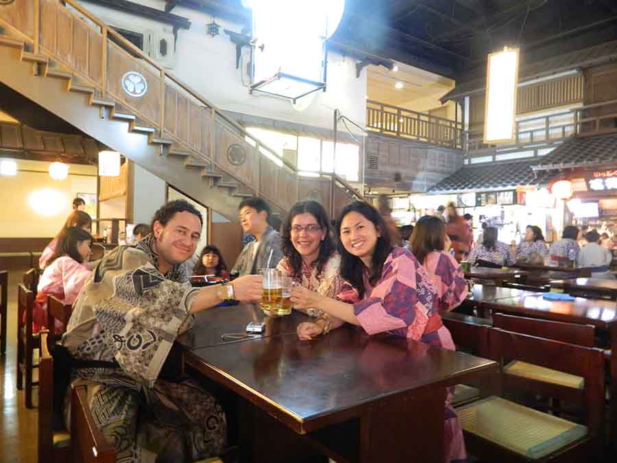 Tras dar una caminadita y visitar Fuji TV, algún centro comercial o el Miraikan (el Museo del futuro), puedes animarte a vivir la experiencia onsen (aguas termales). En Odaiba hay un lugar, Oedo Onsen Monogatari, en el que se permite la entrada a extranjeros (también hay exclusivos para nacionales). Dicen que es muy turístico, pero la mayoría de las personas adentro, al menos el día que yo fui, eran japonesas. Debes ir listo para entrar completamente desnudo, pues en el área de los baños no se permiten trajes de baño y la toalla con la que accedes es muy pequeña, así que si eres penoso tenlo en cuenta. Aparte de las charcas de agua caliente, que tienen diferentes temperaturas y están divididas para hombres y para mujeres, hay área de comida, cuarto de fumadores, lockers y todo está ambientado al estilo tradicional japonés.
