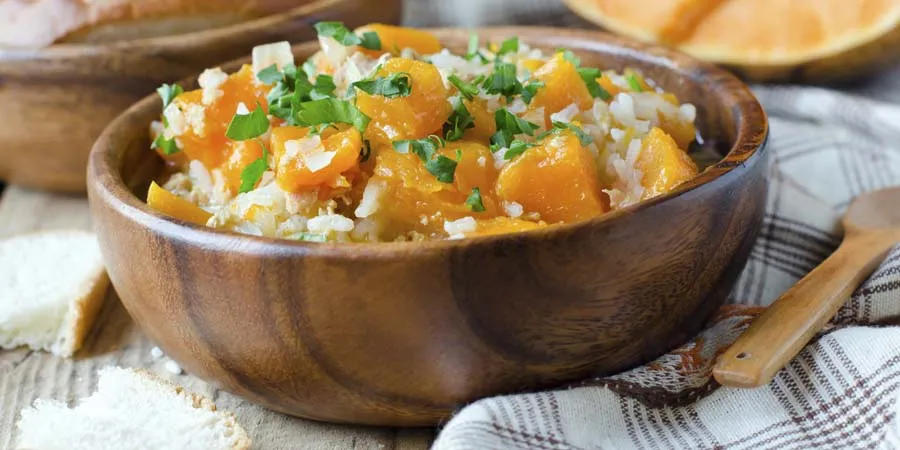Arroz con calabaza de Castilla y nueces de la India