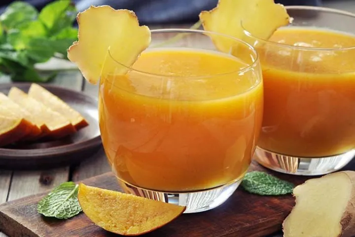 Te damos la receta de este fresco batido de naranja, durazno y piña con jengibre: