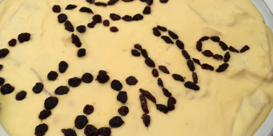 - Decora con almendras fileteadas y uvas pasas chicas.