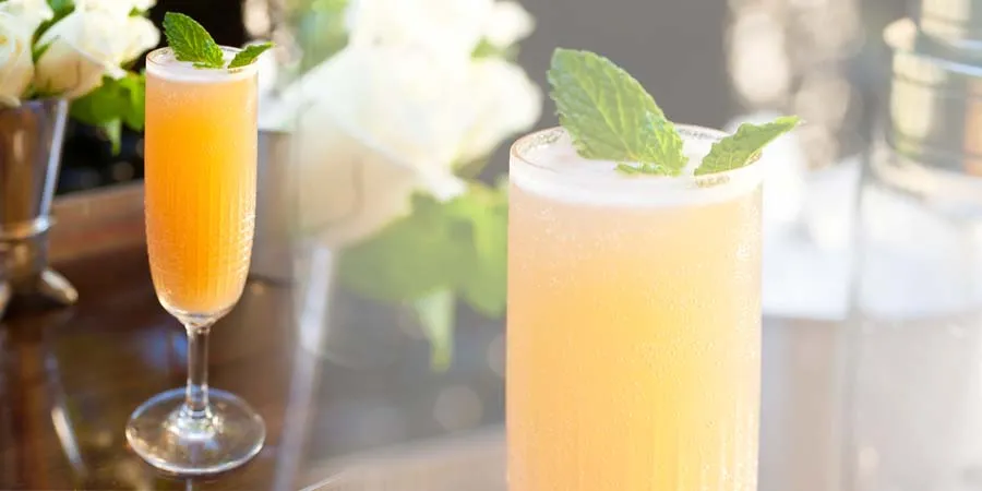 3. Coloca la mezcla al fondo de una copa y agrega champaña (o vino blanco).