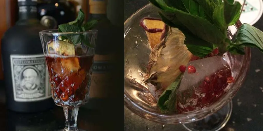 - Puedes moler un poco de pimienta rosa al final para resaltar el ron y las especias. Decora con manzana deshidratada y albahaca.