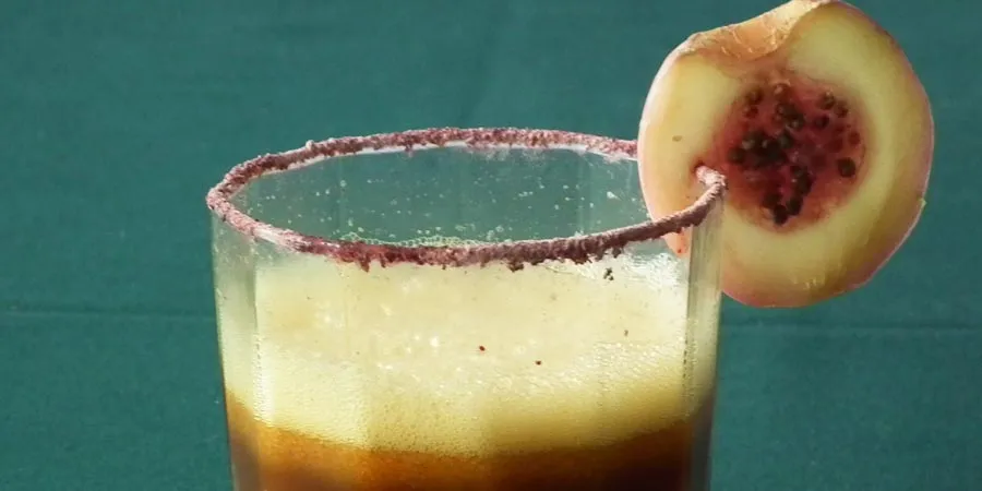 - Después, se sirve en un vaso corto, se escarcha con sal de jamaica y se adorna con una rebanada de xoconostle.