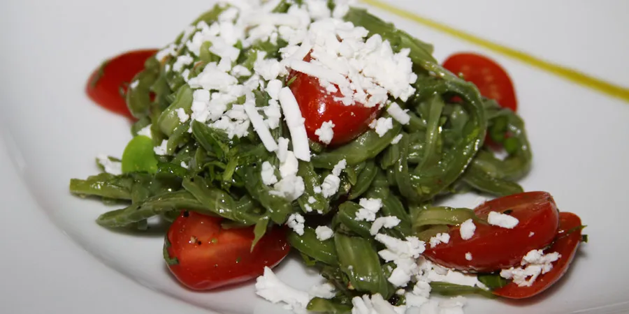 - Después se agrega jitomate cherry, cilantro y habas pequeñas, lo que le da gran colorido a este platillo. Posteriormente, se añade aceite de oliva y vinagre para incorporar todos los ingredientes.