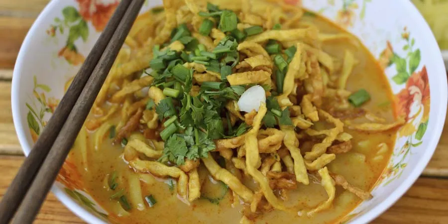 Khao soi tailandés (fideos con pollo)