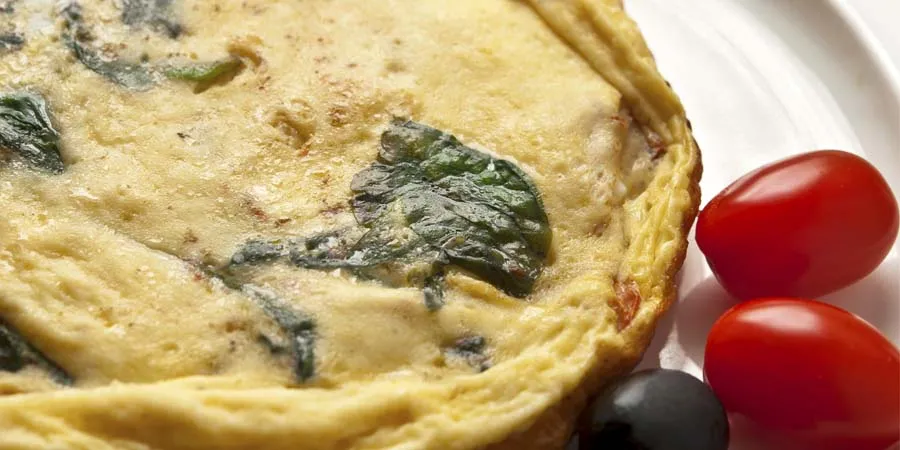 Omelette de espinacas frescas y tomates dulces con queso feta