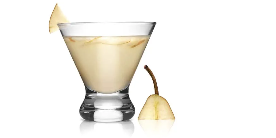 - Macera pera y albahaca y mézclalos en un shaker. Agita vigorosamente.