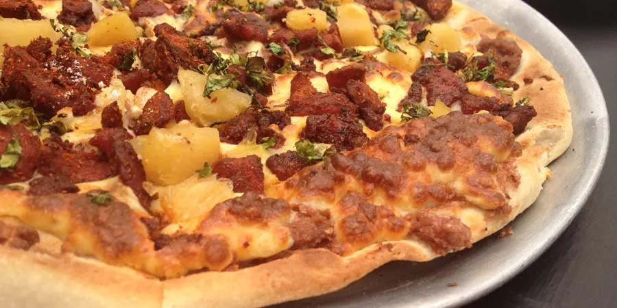 Mi recomendación es que pidas la mítica cuatro estaciones de la gordura, una pizza de suadero, pastor, carnitas y cochinita, que también venden de forma separada. No llevan salsa de tomate sino frijoles, lo que le da un toque nacional y diferente.