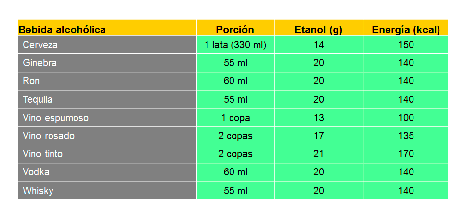 Aquí te dejo esta lista con las bebidas más populares junto con su contenido de etanol y de calorías para que no te dejes engañar por los mitos urbanos de que el vodka y el whisky son casi libres y el ron es el peor enemigo.