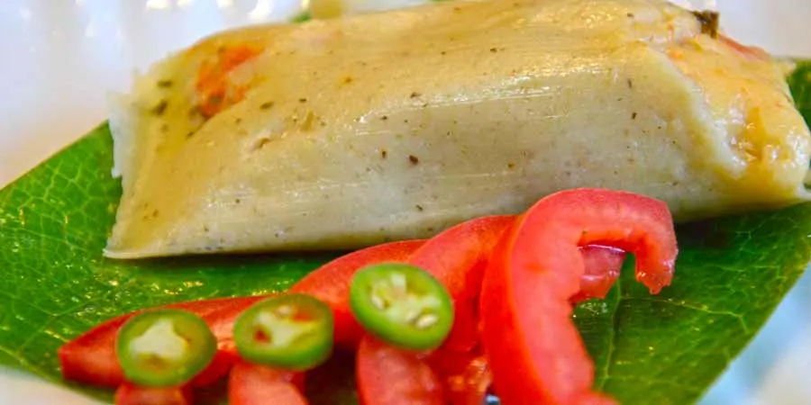 - Toma unas cucharadas de masa y coloca en hoja de maíz. Haz una esfera a la cual en el centro se colocará relleno de camarones y queso. Tapa con masa. Ata con una tira de hoja de maíz. Es importante siempre la forma redonda.