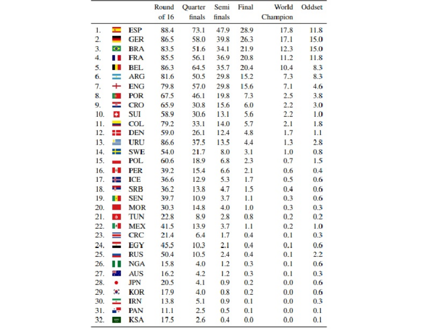 Con este sistema se consiguieron datos para predecir cuáles son las posibilidades de que una selección pase la fase de grupos, cuartos de final, semifinal y se alce con la copa.