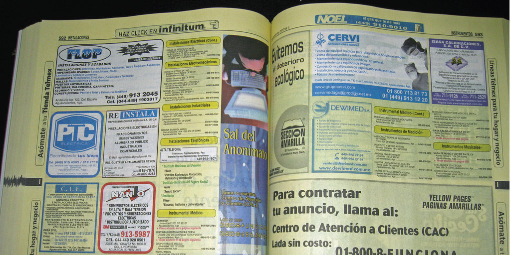 La Sección Amarilla México daba visibilidad a negocios pequeños, la tienda de abarrotes de la esquina compartía página con cadenas grandes. En mercados como La Lagunilla, los locatarios recortaban sus anuncios para pegarlos en sus puestos.