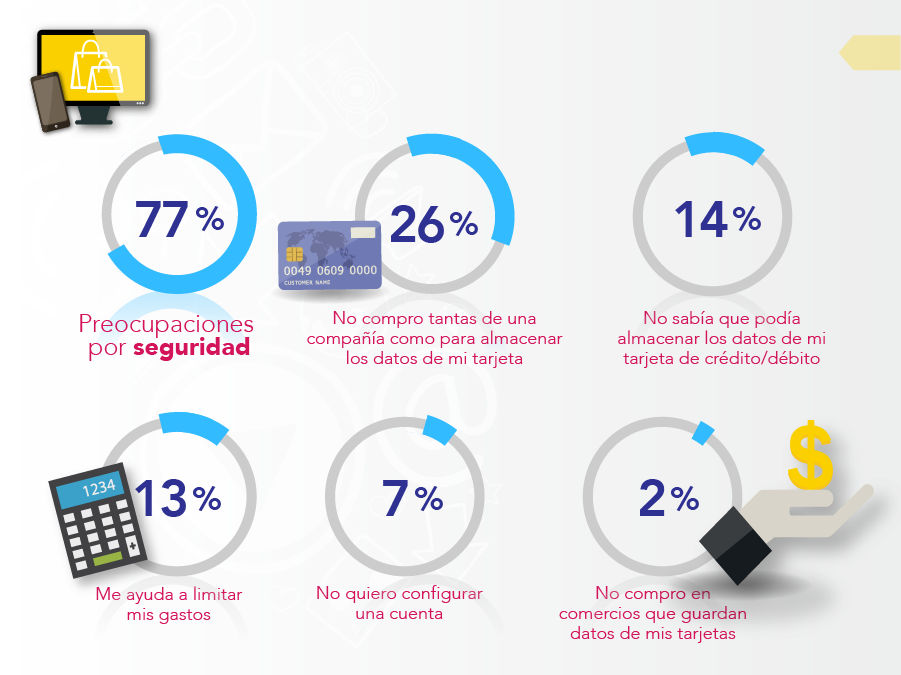 La razón por la que algunos internautas siguen prefiriendo los métodos de pago offline es la seguridad. Así es, muchos de los consumidores aún tienen miedo de dar su información personal y la de sus tarjetas a las tiendas en línea. De acuerdo al estudio estas son las razones para no guardar información de tarjetas de crédito y débito en negocios online: